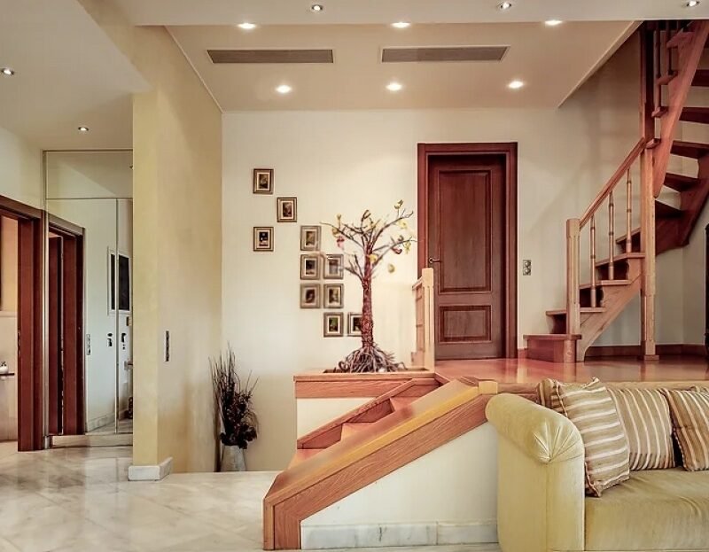 Šis namas pastatytas iš aukščiausios kokybės medžiagų, turi puikų išplanavimą ir nepriklausomą studiją. Interjere – marmurinės grindys, židinys, įmontuoti baldai, apsauginės durys, aliuminio stumdomi langai, dvivėrės stiklo paketos.
