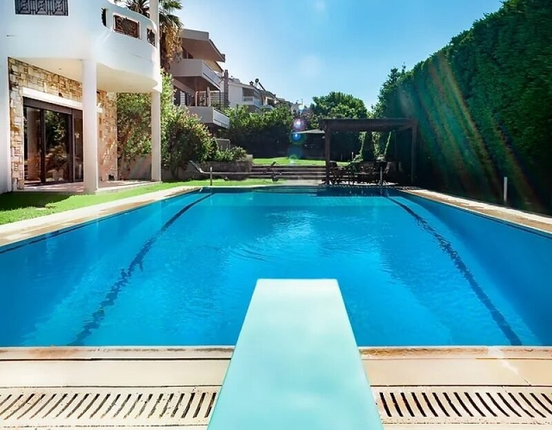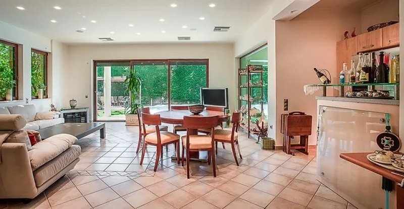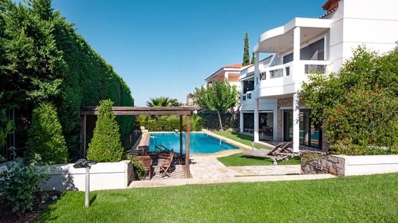 Parduodamas prabangus atskiras namas Saronidos centre, aukštos estetikos ir nepriekaištingos būklės, puikiai tinkantis didelės šeimos nuolatiniam gyvenimui. Namą supa privatus sodas, o iš 70 m² šildomo baseino atsiveria neriboti vaizdai į aplinkinę aplinką.